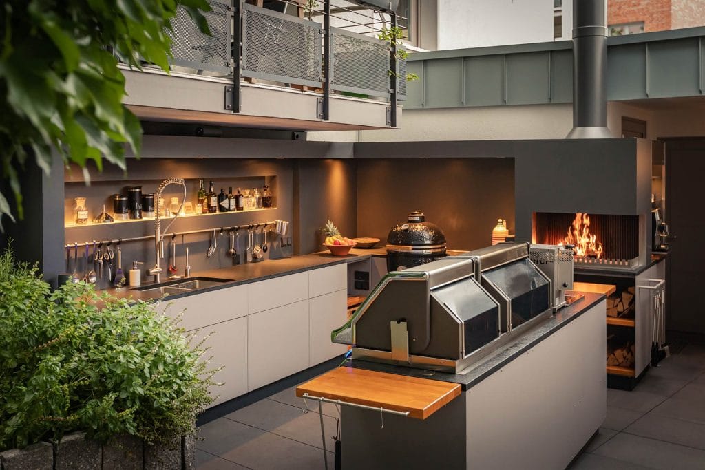 Dort haben wir mehrere fest eingebaute Feuerstellen und freistehende Objekte, die wir teilweise auch in Funktion zeigen können.